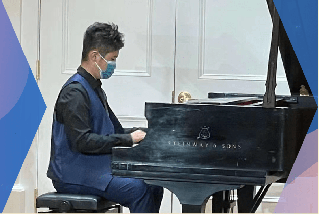 Austin played piano and drums in the school band while a student at Weston Middle School. During this time, he also took piano lessons at the Rivers Schools and performed recitals in front of an audience, helping him feel more connected to the world despite the isolation brought on by the COVID pandemic.